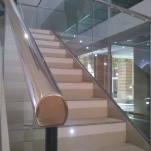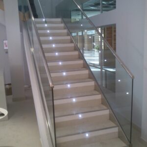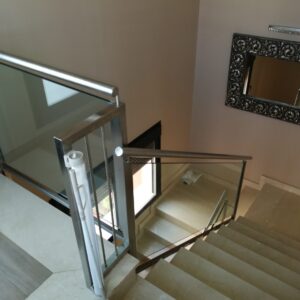 Barandilla de acero inoxidable diseñada en pasarela de acceso a ascensor para empresa privada. In ICMINOX estamos especializados en la realización de trabajos y diseños de acero inoxidable, un material muy resistente y duradero, gracias al que asegurarás durante mucho más tiempo el buen estado de tus instalaciones o mobiliario. No dude en ponerse en contacto con nosotros para pedir su presupuesto sin compromiso.