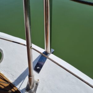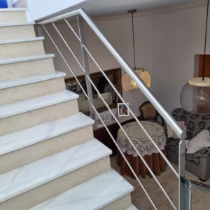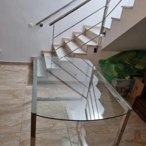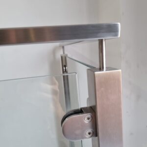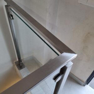 Barandilla y balconera de vidrio con montantes rectangulares,