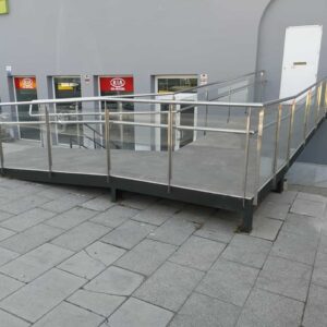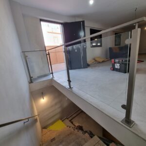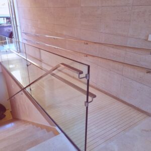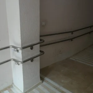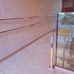 En la sala de acceso a éste edificio diseñamos y fabricamos un pasamanos de acero inoxidable con un bonito diseño como punto de apoyo de la rampa de acceso. Una característica a destacar en éste diseño es que a la altura de las medidas estándares de la instalación de pasamanos, estaban ubicadas las puertas de registro, por lo que la instalación de los pasamanos inhabilitarían el acceso a ellos. Para evitar la realización de obras y todo lo que conllevaría cambiar la ubicación de éstos registros, buscamos una solución alternativa resolviendo la situación de la manera mas sencilla, limpia económica. En ICMINOX hemos personalizado el diseño de éste pasamanos, diseñando y fabricando un tramo desmontable anterior a los registros, facilitando así el acceso a ellos cuando resulte necesario. En ICMINOX diseñamos, fabricamos e instalamos todo tipo de diseños de acero inoxidable, adaptándonos y resolviendo todas las necesidades de cada cliente.
